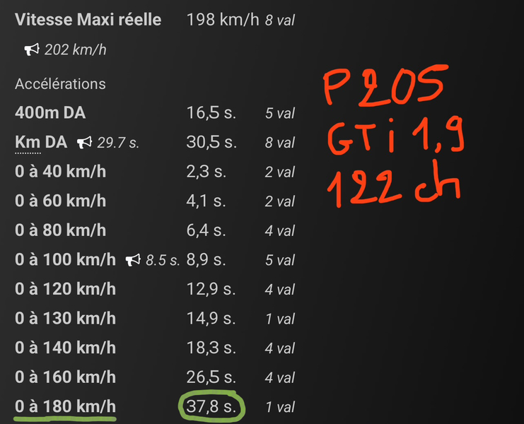 Par rapport à une 205 GTi 1.9 catalysé de 122ch :