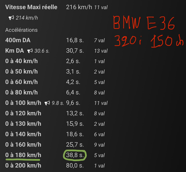 La BMW E23 728i de 0 à 180 Km/h est - rapide de 0,2s.