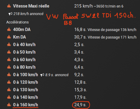 Par rapport à une VW Passat SW B7 2litres Tdi de 150ch :