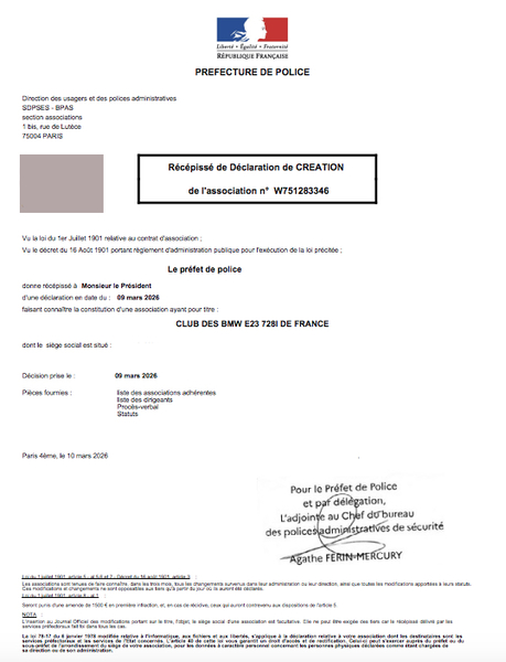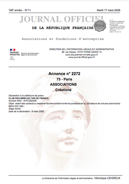 Document officiel du club BMW E23 728i de France
