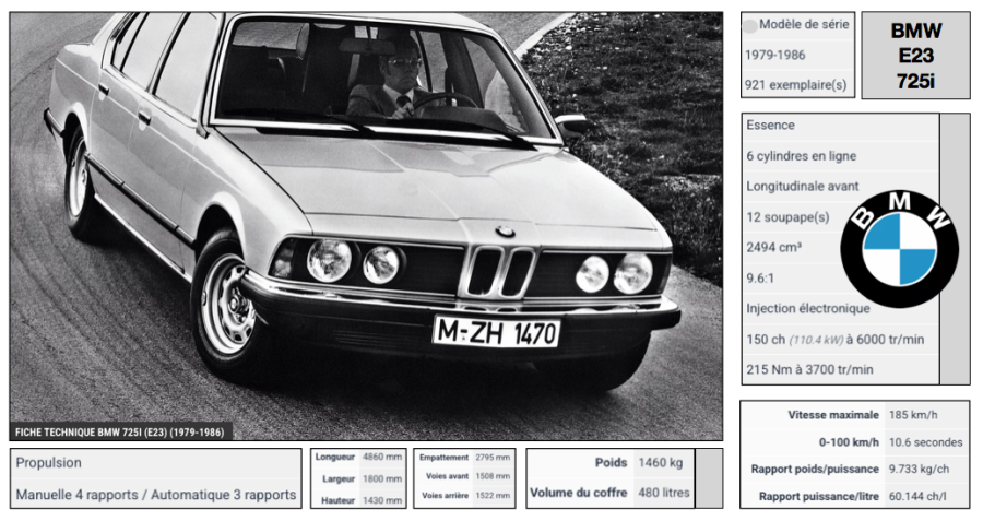 Caracteristiques non exhaustives : BMW E23