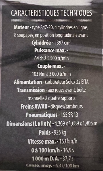 1.397cm3 et préparer le moteur à la sauce Alpine. Avec un carburateur Weber double corps et un filtre à air extirpé de la R16 TS, une boite à cinq rapports reprise à la R16 TX, ce moteur développe 93Cv.
