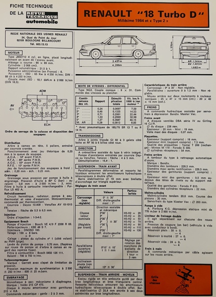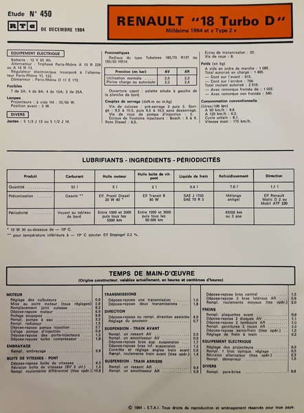 Carnet d'entretien pour la R18 TURBO Diesel.